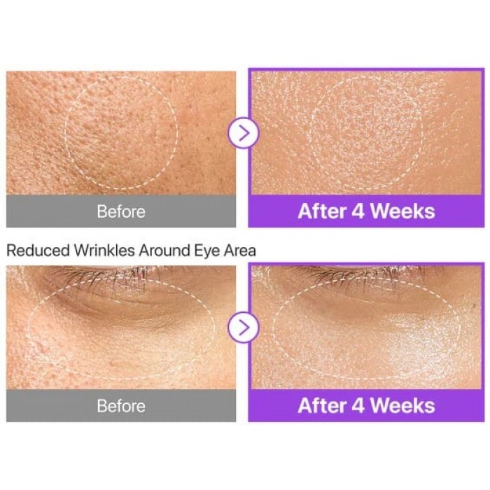 - 50 пептидів — стимулюють вироблення колагену та еластину, покращують бар'єрну функцію шкіри, прискорюють регенерацію клітин і знижують прояв вікових змін