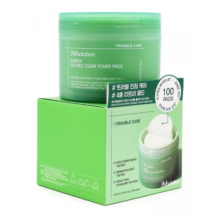 Тонер-педи для проблемної шкіри з маслом чайного дерева і каламіном JMsolution Tea Tree Trouble Clear Toner Pads, 100шт