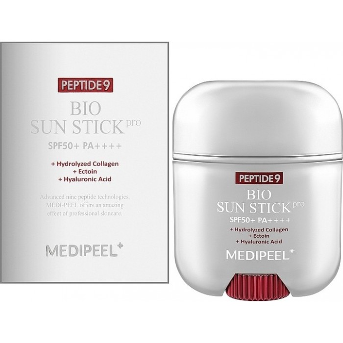 Сонцезахисний стік з комплексом пептидів Medi-Peel Peptide 9 Bio Sun Stick Pro SPF50+ PA++++ є передовим засобом для захисту шкіри від шкідливого впливу сонячного випромінювання. Цей продукт ефективно бореться з пігментацією, сприяє зміцненню тканин і розгладженню зморшок, забезпечуючи видиму омолоджувальну дію.