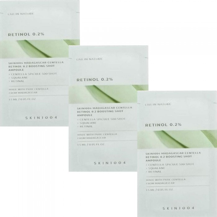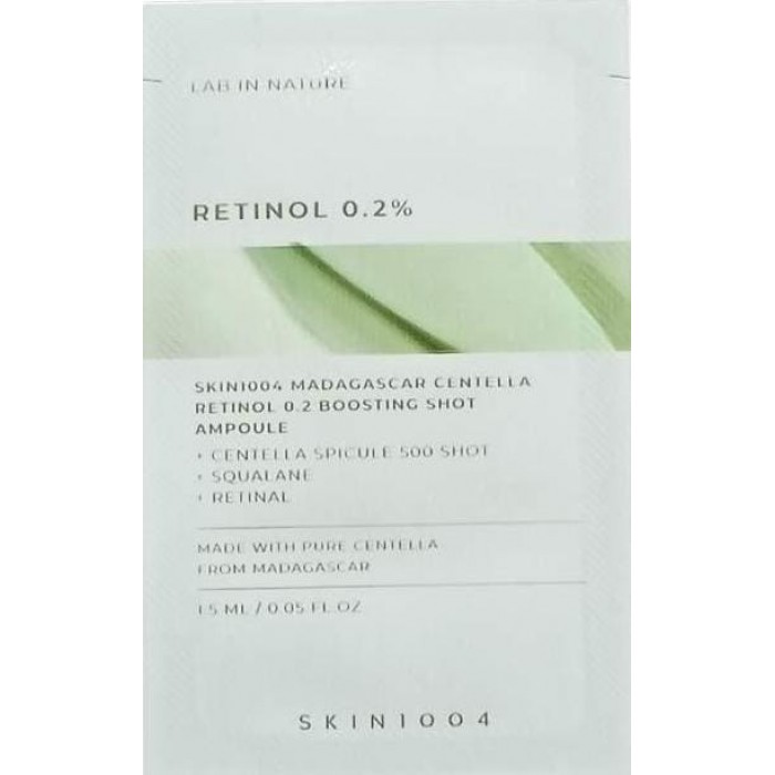 Сыворотка для лица кожи Skin 1004 Madagascar Centella Retinol 0.2 Boosting Shot Ampoule сочетает успокаивающие свойства мадагаскарской центеллы азиатской с мягким 0,2% ретинолом для поддержания обновления кожи, улучшения ее текстуры и уменьшения признаков старения. Подходит для чувствительной кожи, нуждающейся в антивозрастном уходе.