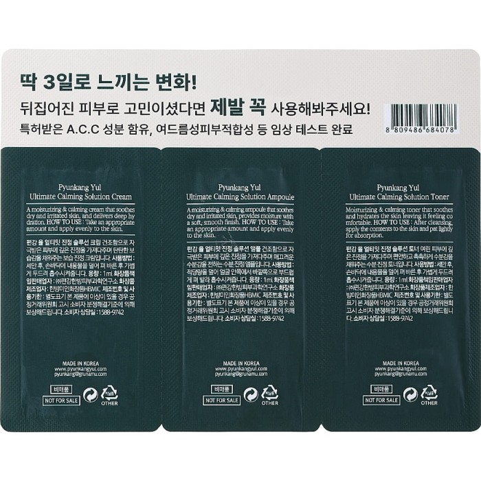 Набор миниатюр для лица Pyunkang Yul Ultimate Calming Sample Pouch (f/serum/1ml + f/cr/1ml + f/ton/1ml)