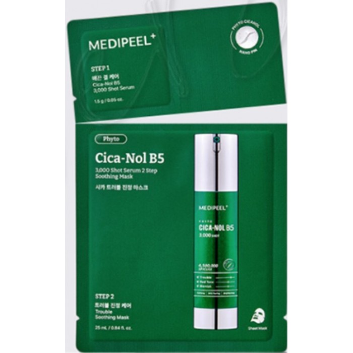 Двухэтапный набор средств для лица с центеллой Medi-Peel Phyto Cica-nol B5 3000 Shot Serum 2 Step Mask, 1pcs