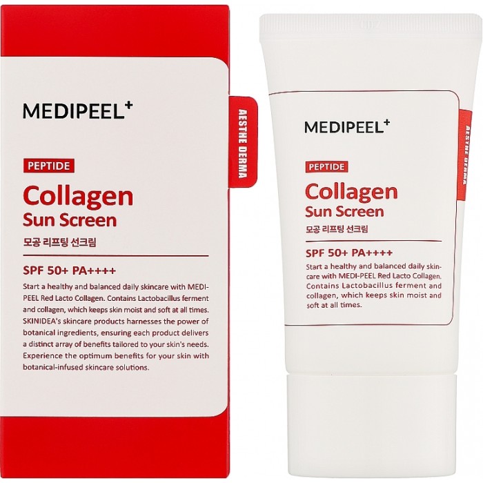Medi-Peel Red Lacto Collagen Pore Lifting Sun Cream — это увлажняющий и легкий солнцезащитный крем, который не только защищает вашу кожу от вредного воздействия ультрафиолетовых лучей UVA и UVB, но и улучшает тон, текстуру и сияние кожи. Этот крем обеспечивает комфортное нанесение, словно увлажняющая эссенция, благодаря своим инновационным компонентам.